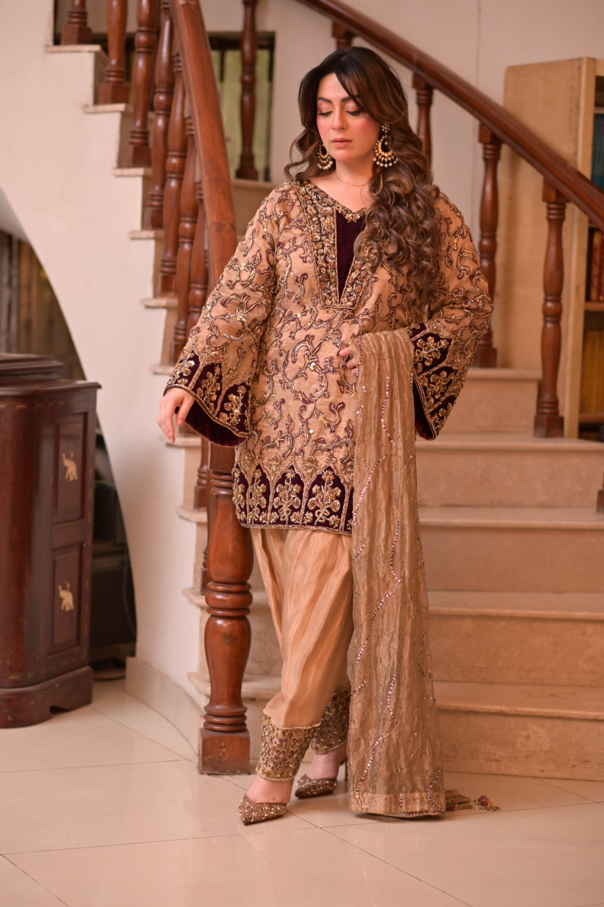 Ideal for weddings, receptions, and special events, this outfit harmoniously blends traditional craftsmanship with modern elegance.